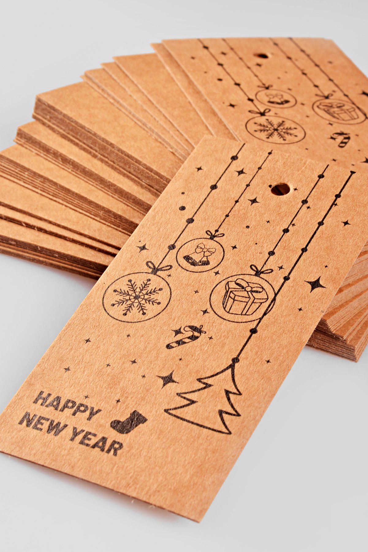 Happy New Year Temalı Kraft Ürün – Paket – Ambalaj – Yılbaşı Etiketi